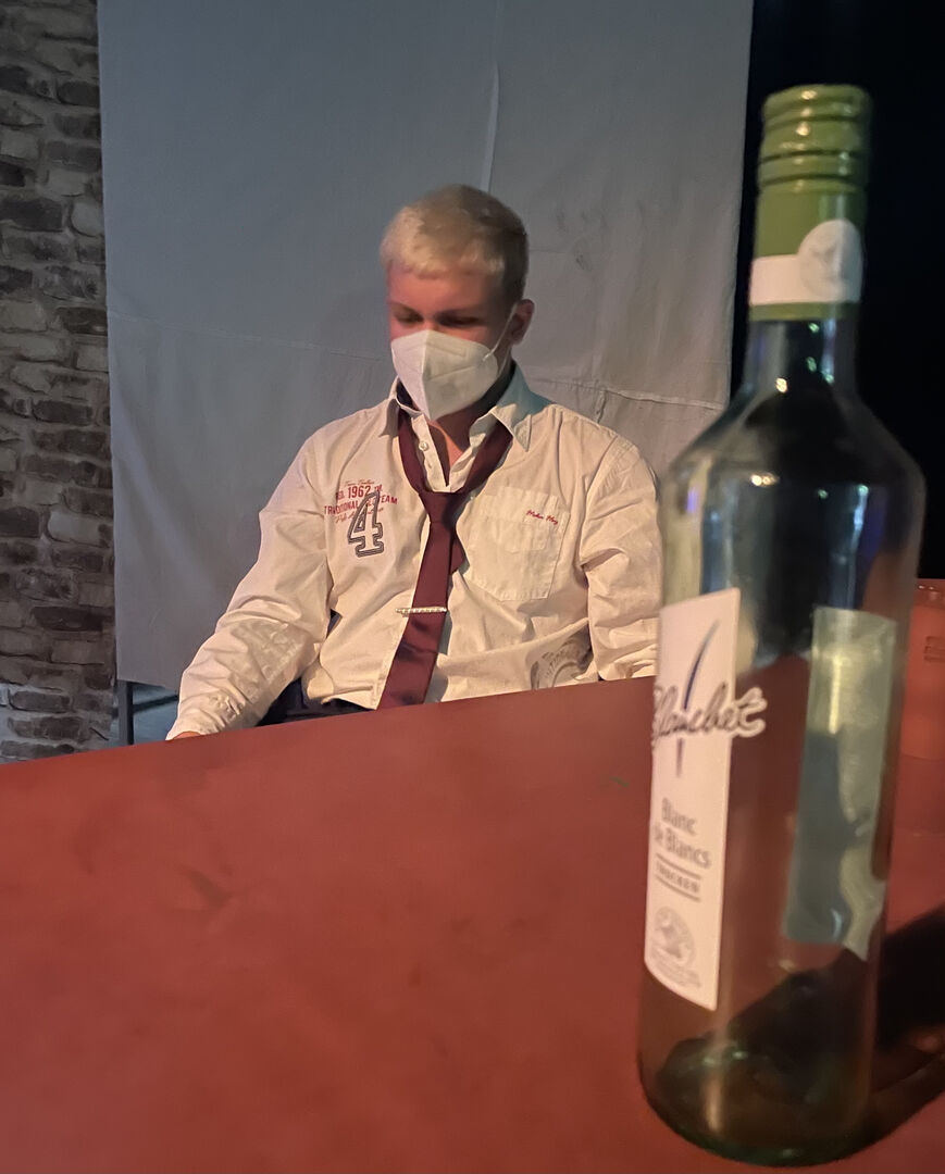 Da wir wegen der Pandemie leider auch keine „große“ Abend-Aufführung planen konnten, wurde das Stück lediglich vor den Deutsch-LKs der Stufe präsentiert.