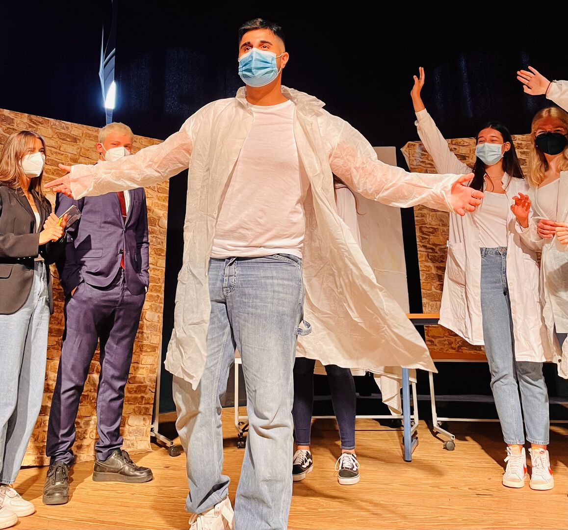 Auch in diesem Jahr haben die SuS des Literaturkurses der Q1 an der Produktion eines Theaterstückes gearbeitet. Die Umstände der Pandemie haben die Proben sowie die Planung einer Aufführung jedoch deutlich erschwert. In der Zeit des Lockdowns haben die SuS ihr Stück, das eigentlich im Rahmen der praktischen Theaterarbeit entstehen sollte, selbst geschrieben und immer wieder auch digitale Elemente (Videos, Podcasts, Tagebucheinträge) erstellt und damit zunächst eine theoretische Grundlage erschaffen.