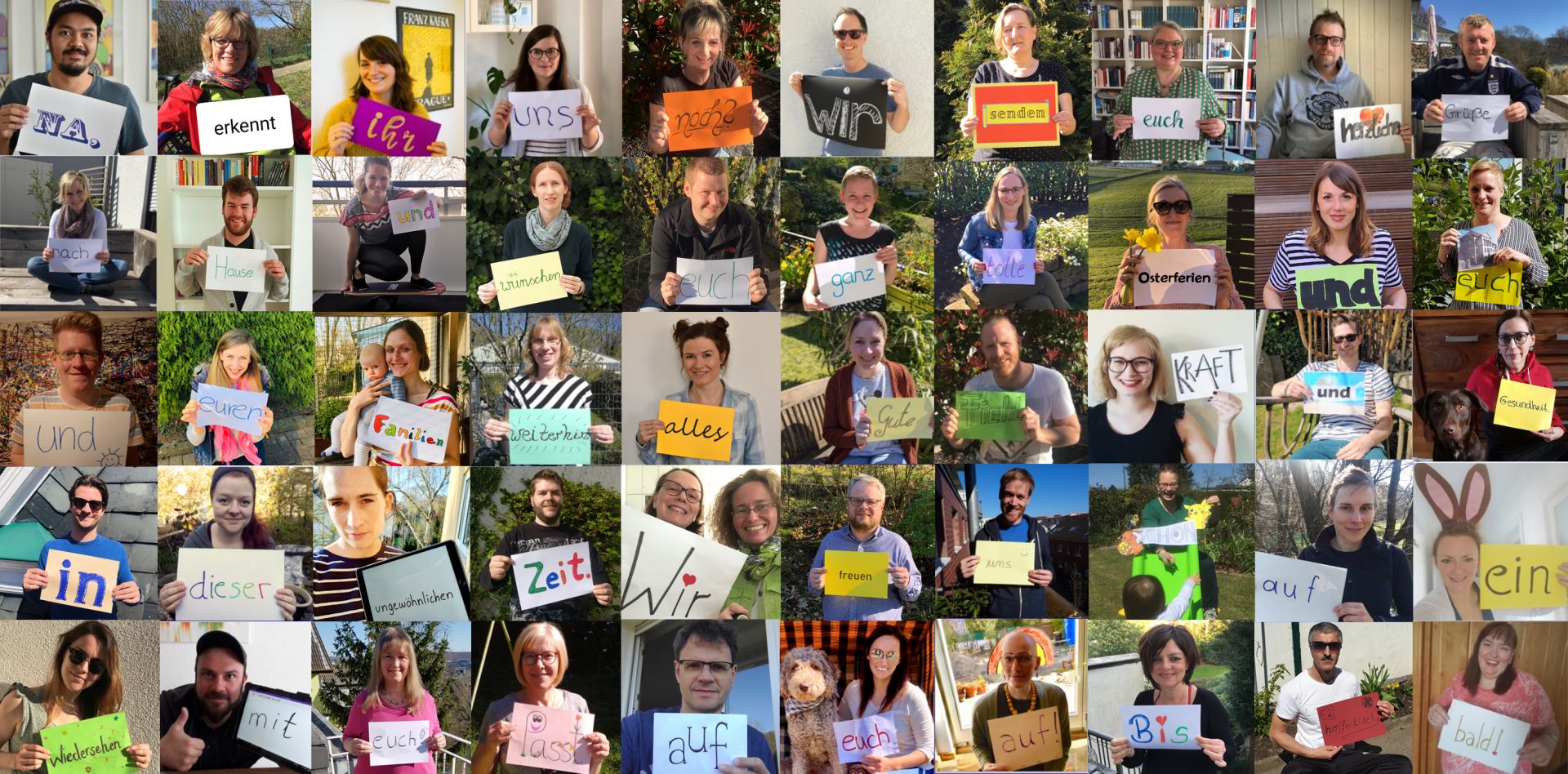 Die Lehrerinnen und Lehrer des Gymnasiums Sedanstraße senden mit einer Fotocollage eine Grußbotschaft an ihre Schülerinnen und Schüler.