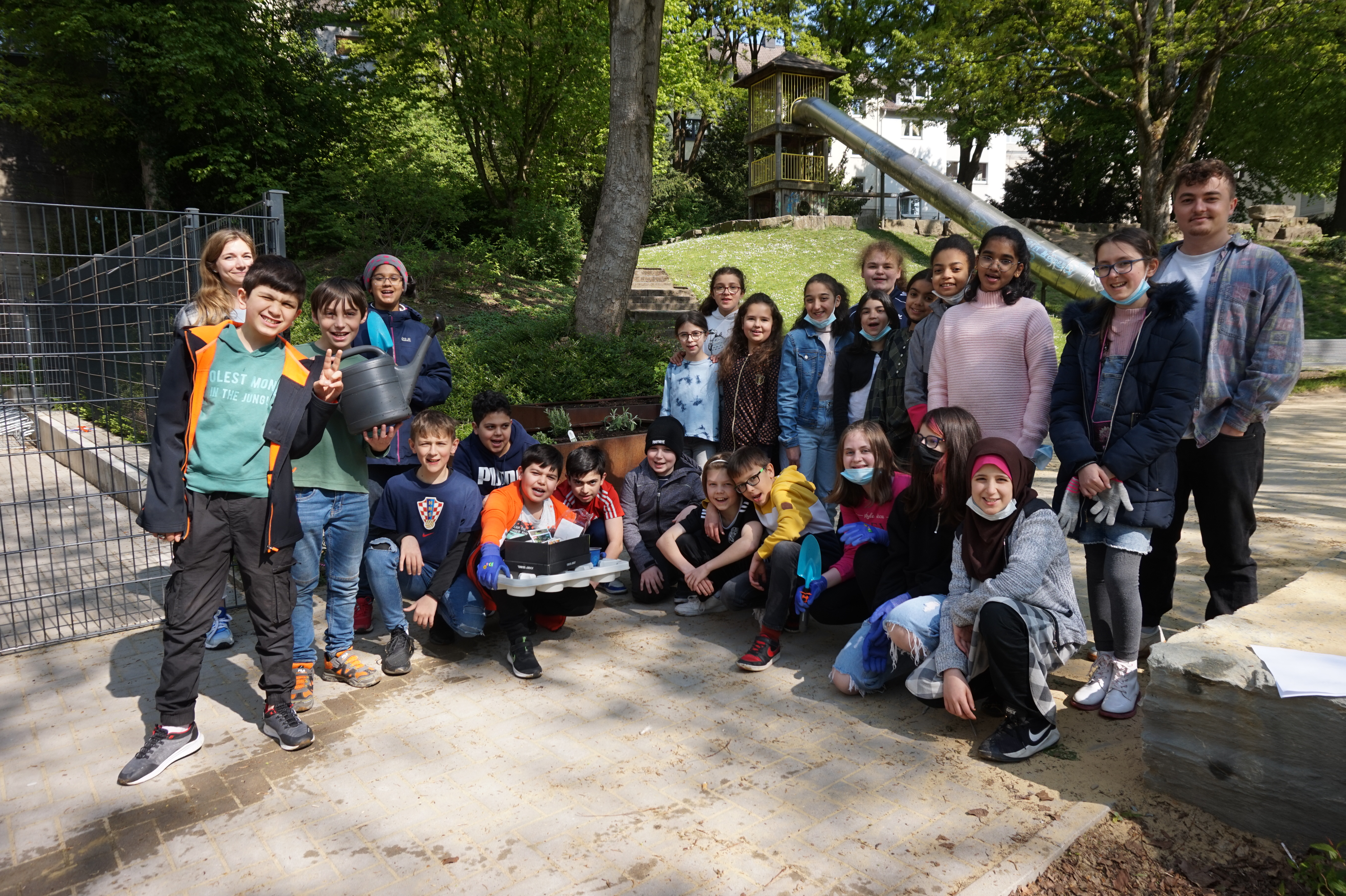 Die Beete auf dem Spielplatz hinter dem Schulhof sind letzte Woche mit Erdbeeren, Salbei, Oregano, Johannisbeeren und einigem mehr bepflanzt worden. Dabei hat die Klasse 5a im Biologieunterricht die Schaufeln …